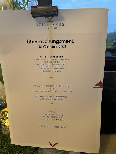 Read moreWir haben bei Volker Krug in der Winzerstube unsere standesamtliche Hochzeit im kleinen Rahmen gefeiert (ca. 30 Leute). Bei der Planung war Volker umsichtig, ist auf unsere Wünsche voll eingegangen und hat für uns ein 9-Gänge-Live-Cooking-Menü entwickelt, das unsere Erwartungen bei Weitem übertroffen hat. Dazu hat er passende Weine ausgesucht. Alle Gäste waren von der Location, der Gestaltung des Abends und vor allem dem Essen und der Weinbegleitung mehr als begeistert. Es war die perfekte Krönung unseres besonderen Tages! Durch die vielen kleinen Gänge und dem Konzept, dass die Gäste jeden Gang an einem anderen Platz einnehmen konnten, wenn sie wollten, hat es sich wunderbar durchmischt und wir konnten uns mit jedem Gast ausgiebig unterhalten. Vielen Dank für den...