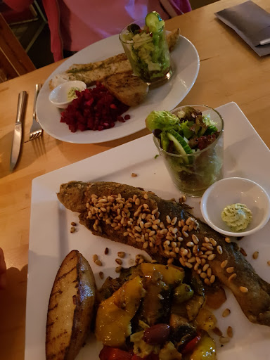 Read moreWir waren gestern Abend dort. Wir hatten einen Tisch reserviert. Es dauerte leider ziemlich lange, bis uns jemand eine Karte brachte. Circa 5 Minuten nachdem wir uns für Getränke und Speisen entschieden hatten, wurde uns mitgeteilt, dass eine Hauptspeise "aus sei". Es wurde sich für etwas anderes entschieden und 5 Minuten später kam die Kellnerin wieder und gab an, dass die Vorspeise, die wir uns ausgesucht hatten ebenfalls "aus sei" und eine aternative Vorspeise auch "aus sei". Ein Tisch, der nach uns kam und vor uns bedient wurde hat die von uns ausgesuchte Vorspeise erhalten, was wir leider sehr unprofessionell fanden, da wir deutlich eher im Restaurant waren. Mandelblätter auf der Forelle wurden durch Pinienkerne ersetzt, da die Mandelblätter, man glaubt es kaum, "aus waren". Es wurde sich mehrfach für die Umstände entschuldigt, da das Restaurant wohl gestern regelrecht überrannt wurde. Sowas kann zwar passieren, aber ein gutes Restaurant, sollte sich an sonnigen Tagen auf viel Kundschaft einstellen. Am Ende des Abends hätten wir uns vom Restaurant gewünscht, dass die Unannehmlichkeiten durch eine kleine Aufmerksamkeit das Hauses (Schnaps oder Rechnung reduzieren) entschuldigt werden. Allerdings war dem nicht so. Dennoch geben wir 3 Sterne, da das Essen wirklich lecker war, nur leider hat das Drum herum nicht...