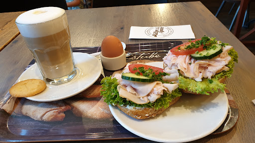 Read moreModernes, gemütliches Café mit netter Bedienung. Dank reeller Espressomaschine gibt es hier einen guten Cappuccino. Hinweis: Hier wird nicht am Tisch bedient! (Finde ich persönlich aber vollkommen okay!) Was ich nicht soo gut finde: Es zieht schnell (es sei denn man sitzt ganz hinten in der Ecke) Es ist relativ " hellhörig" Der Salat, der angeboten wird, war leider ab 13 Uhr bisher immer schon...