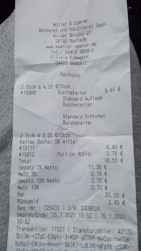 Read moreNix gegen Müller& Egerer im Allgemeinen.Foch die Filiale in Edewecht,toppt alles an schlechtem was es gibt.Gesetzt dem Fall man bekommt dort überhaupt etwas.. Wir sind LEIDER zum zweiten Mal bei dieser Filiale reingefallen. Unfreundliches Personal ist noch das kleinste Übel. Man bekommt entweder NIX..oder nur das was dem Personal gerade keine Arbeit macht. Letztes Jahr,bekamen wir keinen einfachen Kaffee..Mit der Begründung, das in EINER STUNDE!!! geschlossen würde,und man keinen mehr hätte... Gestern bekamen wir GAR NICHTS!!!!Weil die Damen in 30 Minuten schließen wollten... Okay.. Vielleicht sollte man eine schriftliche Anfrage...