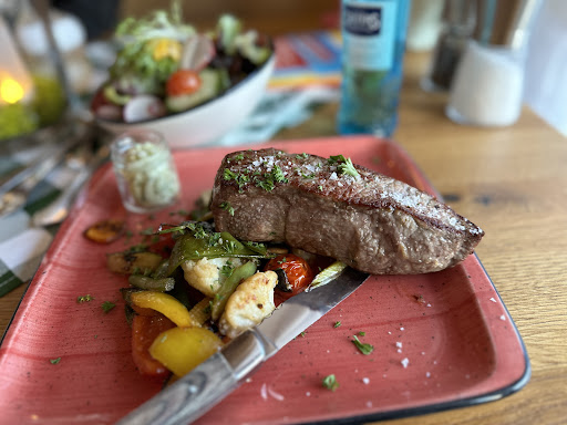 Read moreLEBENSMITTELVERGIFTUNG!!! Wir waren sonntags mit unseren Kindern vor Ort essen. Vor Ort haben wir uns bereits mehrfach über das bestellte Rumpsteak beschwert. Geschmacklich einfach abartig schlecht. Nachdem ich die Hälfte vom Rumpsteak übrig gelassen habe wäre es mehr als angebracht gewesen wenn sich der Chefkoch direkt mal an den Tisch bewegt und hinterfragt hätte wieso man bei so stolzen Preisen die Hälfte zurück gehen lässt! Leider hat meine Frau ebenfalls dieses Rumpsteak probiert mit fatalen Folgen. Am gleichen Abend war ich selber noch einen Freund besuchen bei dem ich mich innerhalb 30 min 4x auf Toilette bewegen musste. Nach dem ich nur noch heim wollte weil ich mit Schweissausbrüchen sowie Durchfall zu kämpfen hatte bin ich vor meinem Auto zusammengebrochen. Anschließend musste mich mein Freund heimfahren weil ich zu nichts mehr fähig war.