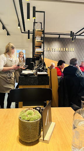 „Genusshandwerk“ Der Name diese Lokals,- ganz salopp gesagt, ist im wahrsten Sinne des Wortes Programm! Café, Konfiserie und gleich einer französischen Bar, mit der Möglichkeit Frühstück, Mittag,- oder Abendessen zu goutieren. Die Auswahl der verschiedenen Kaffee-Zubereitungsarten ist groß, bedauerlicherweise - ein kleines Minus - wird kein Gläschen Wasser zum Kaffee serviert. Der servierte Kaffee ist qualitativ bester Güte mild mit kaum wahrnehmbaren Bitterstoffen, aber doch kräftig und geschmacklich hervorragend. Das Frühstücksangebot ist reichlich, appetitlich angerichtet und selbst ein frisch gekochtes wird minutiös abgekocht. Das beste Frühstück im Ort! Die Speisekarte ist übersichtlich und befriedigt jeden Hunger. Empfehlenswert sind hier die ausgezeichneten Tagesgerichte. Heute gab es Hackbraten mit Beilage und Salat. Fazit: Sehr gut! Das Besondere zum Essen; wer Wasser bevorzugt,- still oder spritzig, bekommt ein geschmacklich sehr gutes einheimisches Wasser zum Preis von 3,80 Euro für 0,75 Liter. Über die Qualität von Pralinen, Lebkuchen, Torten und sonstigen Kuchen und Leckereien braucht man nicht zu reden. Die Konditorei Krapf liefert nach wie vor dieselbe Spitzenqualität wie eh und je. Der Service lässt selbst bei „full house“ nichts zu wünschen übrig. Ich pflege eine solch vorzügliche Hospitalität mit 30 % Tip zu honorieren und das zahlt sich aus, denn man verliert mich nie aus den Augen. So soll es sein. Wer im „Genusshandwerk“ frühstücken oder Mittagessen möchte, muss sich einen Tisch oder Platz reservieren, denn der Laden ist in der Regel fast immer sehr gut besucht bzw. voll besetzt. Auf jeden Fall wenn man nach- oder durch Eggenfelden fährt, ist ein Besuch des Genusshandwerk eine Pflichtübung für jeden der nicht nur Süßes liebt, sondern auch perfekte Gastronomie, die für jeden erschwinglich. Das Preis/Leistungsverhältnis ist eigentlich normal und sehr...