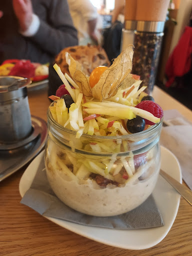 Read moreSuper Frühstück, reichhaltig, schön angerichtet und frisch zubereitet. Sehr netter persönlicher Service. Einziger Kritikpunkt (der mich dazu gebracht hat einen Punkt abzuziehen): Da ich einen Rest meines Birchermüslis in einen ToGo Becher eingepackt bekam und mit diesem durch die Konditorei das Lokal verlassen habe, lief uns die Thekenbedienug auf der Straße hinterher, laut rufend "haben Sie die Brotchips bezahlt?". Mein Mann hatte vorher sogar noch Kuchen an der Theke gekauft und ich Pralinen, da wäre ausreichend Zeit gewesen diskret nachzufragen (oder einfach genauer hinzusehen) was denn im Becher ist. Sehr unangenehm für mich als Kunden. Kann man eigentlich nicht bringen, selbst wenn jemand einen Becher Brotchips mitgehen lässt. Entweder man stoppt ihn diskret im Lokal oder man muss den Verlust dann eben einrechnen. Der Warenwert von 150g getrocknetem Brot ist auch überschaubar. Wie gesagt, wir hatten zusätzlich zum Frühstück noch Pralinen und...