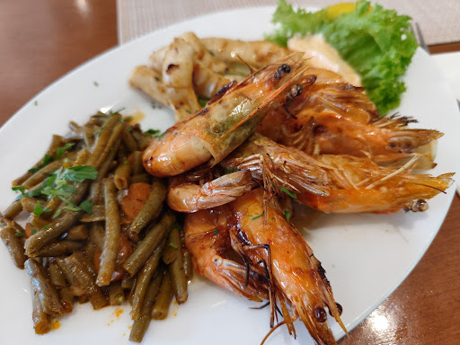 Die Calamari waren Butter-zart und die Scampi auf den Punkt gegart. Das Gemüse- in dem Fall grüne Bohnen war schon etwas stark durch, was dem Geschmack keinen Abbruch getan hat. Salz und Pfeffer standen auf dem Tisch, allerdings war das Gericht so gut abgeschmeckt dass es nicht nötig war etwas nach zu würzen. Zu dem Poseidon-Teller (bzw. als Vorspeise) wird ein Beilagensalat mit Essig-Öl Dressing gebracht. Ich mag es ja sehr sauer, leider hat man hierbei vom Essig nichts gemerkt und es war ziemlich Ölig, trotzdem nicht schlecht im Geschmack. Die Teller der Hauptspeise waren warm, wodurch ich mir Zeit beim essen nehmen konnte, was ich immer sehr wichtig finde.