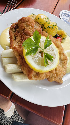 Naja! Laut den Bewertungen im Internet hätten wir uns eigentlich mehr erhofft! Das Wetter war nicht optimal, trotzdem war der kleine Biergarten voll. Netterweise haben uns andere Gäste an ihrem Tisch Platz gemacht. Ab da wurden wir erst einmal gekonnt ignoriert. Der junge Mann fragte die Gäste, die bereits gesessen waren, was sie wollten und ging. Mein Mann rief noch nach ihm, interessierte nur nicht. Die Getränke wurden gebracht. Wir weiterhin ignoriert. Meine Kinder jammerten schon, wir waren immerhin 5 Leute. Nachdem ich meinen Stuhl so hingestellt hatte, dass er mich nicht mehr ignorieren konnte, nahm er unsere Getränkebestellung auf. Er brachte die Getränke und wollte schon wieder gehen. Wir orderten die Speisekarte. Er wollte sie bringen. Nach 10 Minuten orderten wir die Karte beim nächsten Kellner. Weitere 5 Minuten später kam endlich die Karte. Da saßen wir schon eine dreiviertel Stunde im Biergarten. Also fix was ausgesucht und Mal wieder warten, bis sich jemand erbarmt unsere Bestellung aufzunehmen. Der Kellner schaute zum Himmel und meinte sowas wie: könnt knapp werden! Unsere Gläser waren leer! Ignoriert! Das erste Mal in meinem Leben saß ich in einem bayrischen Biergarten auf dem Trockenen. Das Essen kam dann Recht schnell. Die Schnitzel waren frisch geklopft. Alles bestens. Aber mein Sohn hatte Spätzle mit Soße bestellt. Leider war die Soße eine Pilzsauce. Mein Sohn mag keine Pilze. Er ist 11 und hat seine Portion mit hängen und würgen gegessen. Ich habe noch nie! Bei einem Kindergericht Pilzsauce dazu bekommen. Achja Getränke haben wir dann doch noch bekommen. Kurzum: Essen war gut, Service war mies. Schade! Wir hatten uns sehr auf den Biergarten gefreut, aber hier werden zuerst Freunde und Bekannte bedient und erst danach die zahlenden Fremden, da bleibt mir nur Google um weitere Fremde zu...