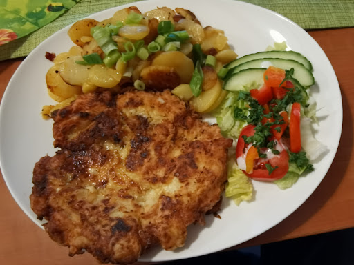 Read moreSchnitzel ist nicht gleich Schnitzel - oder doch? Mitnichten, hier kann man sich durch etliche Schnitzelvariationen durchessen, aber eins am Abend reicht! Schließlich gibt's noch "Lametta" drumherum: Knusprige Pommes (mit Ketchup nebenbei) oder Kartoffelecken (mit leckerer Sauercreme) oder deftige Bratkartoffeln (wer sie braun und knusprig mag, sollte dies vorher sagen...) Das bunte Salatbukett, ganz frisch zubereitet mit einem leckeren Joghurtdressing, rundet das Ganze ab! Die Bedienung ist überaus freundlich, sogar unser Hund wurde lieb begrüßt und bekam einen Napf mit frischem Wasser hingestellt. Es gibt Bier vom Fass und natürlich auch Softgetränke. Der Gastraum ist zwar klein, aber sehr sauber und ansprechend eingerichtet; eine Reservierung wäre empfehlenswert. Ach ja, und wer einen "besonderen Ort" aufsuchen muss, ist auch hier angenehm überrascht: sehr sauber. Wir kommen...