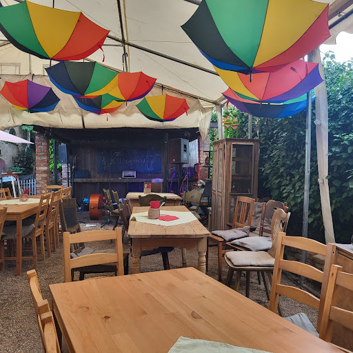 Kann die überschwänglichen Bewertungen nicht nachvollziehen, jedenfalls nicht, für das, was ich heute erhalten habe! Ambiente: morbider Charme im Außenbereich ist sehr positiv ausgedrückt. Das Zelt hat die besten (und zweitbesten) Tage schon lange hinter sich, total löchrig, wird versucht, mit umgedreht aufgehängten Regenschirmen zu kaschieren, aber die habens auch bald geschafft. Service: sehr junges Personal, freundlich. Salat: war mal frisch, irgendwann, immerhin wahrscheinlich mit selbst gemachtem Dressing, Portion ne knappe Kinderhand voll. "Jägerschnitzel": das mit Abstand schlechteste, was mir je als solches serviert wurde. Immerhin keine TK-Ware, aber aus der Fritteuse. Absolut geschmacklos, weder Fleisch noch Panade mit einem Hauch von Salz und/oder Pfeffer. Pommes: zu wenig Hitze, zu früh rausgeholt, latschert. Immerhin mit ein paar Farbtupfern Pommessalz. Der absolute Burner ist aber die "Jägersoße": eine braune Flüssigkeit mit 8 schrumpeligen Pilzstückchen, total geschmacklos, wässrige Lösung ist die beste Umschreibung. Wahrscheinlich war es mal eine Soße, ein paar Fettaugen waren noch zu erkennen, bis sie dann zu oft verlängert wurde - nur Wasser ist schlimmer, hat aber mehr Geschmack. Geht auch als Spülwasser durch. Darauf angesprochen, sagten die Servicekräfte relativ hilflos, man würde dies dem Koch mitteilen - ich habe auf einen Besuch am Tisch gewartet! Man hätte dies auch dem Betreiberpaar mitteilen können, die auch draußen saßen. Einen Kommentar betr Preis-/Leistung...
