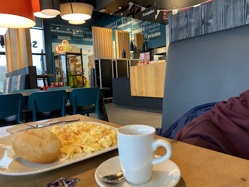 Auf dem Rückweg haben wir an gleicher Ausfahrt dem ganzen Nordseits noch eine Chance gegeben. Alles war perfekt, die beiden Oat Cappucinos waren perfekt, die Servicekraft war sehr freundlich in der Beratung und auch mein Antipasti Ciabatta war sehr lecker und heiß. Die Gegenseite hat uns total...