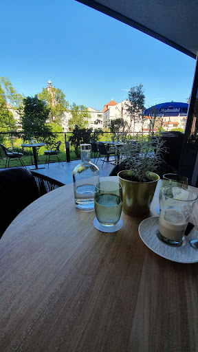 Update von Ende 2021: Waren mittlerweile zwei Mal zum Abendessen hier. Das Essen schmeckt sehr gut. Zwischenzeitlich war man gezwungen mindestens 2 Gänge zu nehmen, was scheinbar wieder aufgehoben wurde. Monatlich wechselnde Karte. Personal sehr freundlich, manchmal nur etwas langsam. Innen super gemütlich und stylisch. Beim Kaffee bleib ich dabei, okay aber dafür einfach zu teuer um mal eben im Sommer auf der Terrasse einen Kaffee zu trinken. Kuchen (Ende 2021) ebenfalls nicht gut, dafür aber die Nachspeisen beim Abendessen.