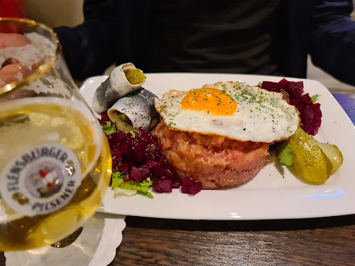 Die Hauptspeisen waren super lecker: Labskaus (der beste bisher), Holsteiner Schnitzel (genau so! Die Remulade ein Traum) 3x Nudel Bolo mit Kürbissen (super! Man schmeckt die Erfahrung und Liebe mit der dieses vermeintlich einfache Gericht von Hand und Grund auf selbst gekocht wurde).