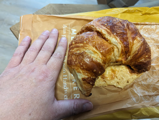 Read moreAbsolut enttäuschend. Gegen 16 Uhr bekamen wir den Kuchen nur auf Pappe serviert, da ja die Teller abgewaschen werden müssten. Kaffee gab es nur noch aus der Filtermaschine, was grundsätzlich ja nicht schlecht sein muss. Allerdings wurde aus den beiden großen Kaffees je ein mittlerer, da es gar nicht genügend Kaffee mehr gab. Aber Geld zurück oder einen kleinen Ausgleich gab es auch nicht. Zwei Franzbrötchen zum mitnehmen in eine Tüte. Eines davon bestand tatsächlich aus mehreren Teilen, obwohl noch genügend vorrätig waren. Hier bleiben die Punkte Nachhaltigkeit, Kundenfreundlichkeit, Preis-Leistungsverhältnis und Vertrauen absolut auf...