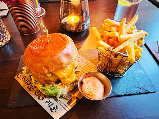 Sowohl die Außenanlagen, als auch das Innere des Lokals wirkten sehr gepflegt. Die Mischung aus (echten!) Vintage- und modernen Stilelementen im Inneren hat Charme! Die Speisekarte ist klein, aber fein und die Deklaration von Allergenen erfolgt verständlich durch gut erläuterte Symbole. Wir wurden sehr freundlich empfangen und nach kurzer Beratung zu unserem Platz geleitet. Dass die Servicekräfte eher jugendlich flott und unkonventionell, als in steifer Kellner- oder friesisch spröder Kirchspielkrug-Manier agierten, hat uns in keiner Weise gestört. Eine falsche Lieferung Pommes (konventionell, statt Süßkartoffeln) wurde mit einer sofortigen Entschuldigung und schneller Nachlieferung, mit nochmaliger Entschuldigung des Versehens, korrigiert. Die normalen Pommes wurden selbstverständlich am Tisch belassen. Zwischen Vorspeise und Hauptgericht wurden wir gefragt, ob das Essen sofort abgerufen, oder erst nach einer Pause serviert werden solle. Auch das findet man heutzutage selten. Wir hatten Burger, Paneer mit Naan, Biryani (Reis) und Fried-Chicken. Dass das Essen NICHT wie „bei den meisten Indern“ in schmeckte, hat uns gut gefallen. Einige Rezensionen haben das bemängelt. Wir sahen es definitiv als positiv an, dass man die feinen Geschmacksnuancen frischer Zutaten erkennen konnte und nicht alles in wuchtigem Currypampf getötet wurde! Wir hatten einen Cocktail (Negroni), der ebenfalls sehr geschmackvoll war.
