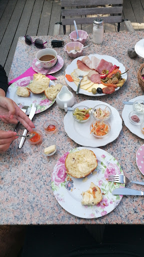 Read moreSeit vielen Jahren unser absolutes Lieblingscafé, nachdem wir Clare seinerzeit zufällig als rettende Oase inmitten fürchterlichen Wetters entdeckt haben und sie uns tropfnass aufgenommen und sogar unsere Klamotten während des rettenden Kaffees in den Trockner geworfen hat. Es ist soooooo urig, überall ist was Schnuckliges zu entdecken und (oft) auch käuflich zu erwerben (unbedingt in die beiden Gartenschuppen gucken, siehe Bilder). Zum Mitnehmen empfehle ich auch unbedingt die selbstgemachten Chutneys! Die Kuchen und Torten sind allesamt selbstgebacken, einer besser als der andere. Achtung große Stücke..... Einer meiner Lieblinge ist die Pflaumen-Zimt-Tarte. Total lecker auch die pikanten Kleinigkeiten, z. B. die Gemüsequiche und der gemischte kleine Salat dazu.... vlt die Tagessuppe vorher.....