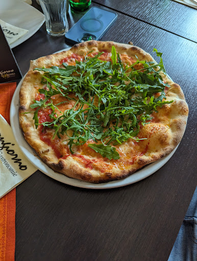 Waren letztes Jahr schon einmal in der Pizzeria und waren mit dem Essen und dem Service recht zufrieden. Deshalb waren wir dieses Jahr noch einmal dort. Zu unserer Enttäuschung ein riesiger Reinfall. Da wir nicht reserviert hatten, bekamen wir den letzten freien Tisch direkt am Eingang gegenüber dem Tresen (eigentlich ja ein gutes Zeichen, wenn alles ausgebucht ist). Der Tisch wurde, während wir schon saßen, noch einmal nass, nicht feucht, abgewischt ohne ihn danach noch einmal nachzutrocknen. Neue Servietten und Besteck wurde nicht aufgelegt. Von einer recht missmutigen und anscheinend gestressten Bedienung wurde zeitnah die Speisekarte gebracht und die Getränke aufgenommen. Die Speisen wurden nach angemessener Zeit aufgenommen. Da die Getränke auf sich warten ließen, konnten wir sehr gut die Arbeitsabläufe hinter dem Tresen beobachten. Nun verstanden wir auch, warum die Getränke so lange auf sich warten ließen. Ein total überforderter Angestellter am Zapfhahn und eine offensichtlich total falsch eingestellte Zapfanlage sorgten für mehr Schaum als Bier im Glas. Überschüssiger Schaum auf den Biergläsern wurde mit einem normalen Esslöffel abgeschöpft und in ein anderes Bierglas gefüllt. Aus anderen zum Teil gefüllten Biergläsern wurde Bier in andere Gläser umgeschüttet. Dabei wurde das Bierglas mit einem Bierdeckel (Pappbierdeckel) bis auf einem kleinen Spalt abdeckt, um den noch vorhandenen Schaum zurückzuhalten. Die so teilentleerten Biergläser wurden dann auf gleiche Weise wieder nachgefüllt. So verlängerte sich ein 7 Minuten Pils auf ein Vielfaches. Nach etwa 15-20 Minuten wurden die bestellten Getränke (1 Spritz und 1 großes Bier) gebracht. Etwa 15 Minuten später kamen dann unsere Pizzen. Die eine wie bestellt, die Andere mit Oliven obwohl ausdrücklich ohne Oliven bestellt. Diese wurde mit dem Hinweis, dass die Pizza neu zu fertigen sei und nicht nur die Oliven zu entfernen seien, da ich den Olivengeschmack nicht mag, reklamiert. Die Pizza wurde mit Knurren wieder mitgenommen. Die richtige Pizza konnte jedoch auch nicht gegessen werden, da immer noch kein Besteck aufgelegt worden war. Nach guten 5 Minuten wurde eine neue Pizza gebracht. Auf unseren Hinweis bekamen wir dann auch endlich Besteck. Auf der Pizza nur ganz grob geschnittene Zwiebeln und dürftig mit Thunfisch und Käse belegt, Oregano Fehlanzeige. Der Pizzateig war am Rand fast weiss und nicht ein Hauch von knusprig. Die Pizza war die mit Abstand schlechteste Pizza, die ich je gegessen habe. Total fade, weich und geschmacklos. Da sich bei uns bereits ein erhebliches Hüngerchen eingestellt hatte und um die bereits sehr gestressten Mitarbeiter nicht noch mehr zu stressen, haben wir auf eine weitere Reklamation verzichtet. Bei unserer weiteren Tresenbeobachtung mussten wir dann leider noch erleben, dass ein in ein Glas gefüllter Saft wieder in die Flasche zurück geschüttet wurde. Der Barkeeper hatte wohl gemerkt, dass er den falschen Saft eingefüllt hatte. In das ausgeleerte Glas wurde dann, ohne das Glas zu spülen, der andere Saft eingeschüttet. Nach unserer Reklamation und auch später beim Bezahlen wurde von den Angestellten nicht einmal nachgefragt, ob alles in Ordnung sei, es uns schmeckt oder ob wir noch etwas trinken möchten. Von Kundenfreundlichkeit und Service haben wir leider eine andere Vorstellung. Bei dem Personal hatte man das Gefühl, dass niemand wirklich wusste welche Aufgabe im zugeordnet war. Jeder kümmerte sich halbherzig ohne Koordination um alles, so dass auch einiges an Bestellungen untergegangen ist. Dieses Lokal wird uns nicht mehr wiedersehen. 0 Sterne können leider nicht...