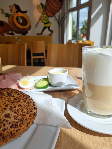 Read moreWir sind eigentlich Gäste auf dem Campingplatz, aber da es heute früh so geregnet hat, haben wir uns für ein Frühstück beim Bäcker entschieden. Wir wurden so angenehm überrascht von richtig freundlichen, fröhlichen, geduldigen Verkäuferinnen, die trotz des Wetters und der Arbeit am Wochenende ihren Job wirklich gerne zu machen scheinen. Es gab in einem gemütlichen, sauberen Ambiente ein Wochenend- Frühstück, dazu konnten wir auch noch Spiegel- und Rührei bestellen und alles wurde super schnell, liebevoll und frisch zubereitet. Ein dickes Dankeschön an die Frauen- Crew heute morgen für diesen schönen Start in unser Wochenende, wir empfehlen euch sehr...