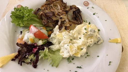 Das Schnitzel mit Pfifferlingen ist frisch und hat eine knusprige Panade. Die Pfifferlinge sind geschmacklich und von der Konsistenz nicht optimal. Dass man Pilze nicht wäscht ist hier noch nicht angekommen. Die Rahmsoße ist zu dickflüssig. Hervorragend sind die Spritzkartoffeln. Selbstgemacht und frisch zubereitet ist heutzutage wirklich etwas besonderes.