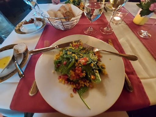 Während ich und meine Begleitung in anderen Restaurants in Eisenach schon voreingenommen und absolut schrecklich bewirtet wurden, hatten wir hier keinerlei Probleme. In Jeans fand übrigens auch mein Besuch in der Turmschänke statt, wir kamen um halb 9 Uhr an und hatten nicht reserviert: auf Nachfrage bekamen wir dennoch zügig einen Tisch. Wir wurden ganz normal empfangen. Der Kellner war beim Servieren freundlich und geduldig, weil meine Begleitung gebrochen deutsch sprach - der Kellner blieb aber immer nett und höflich. Natürlich blieb der Smalltalk wie bei den anderen Gästen an Nachbartischen aus, aber wir kamen ja auch zum Essen und nicht, um Freundschaft mit dem Service zu schließen. Wir beide durften den Wein verkosten, es wurde uns eine sehr gute Empfehlung gegeben und der Gruß aus der Küche (Fasanenbrust) war erst der Auftakt. Das ganze Essen war sehr gut, der Spargel lecker, das Fleisch klasse, das nebenbei gereichte Olivenöl erstklassig! Zuletzt fiel der Spinatsalat mit Taboulé leider unter die Kategorie "Was der Deutsche unter Taboulé/einer ausländischen Speise versteht" und hat wenig mit einem arabischen Taboulé gemein, war allerdings trotzdem schmackhaft.