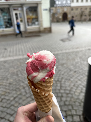 Read moreNaja... Also das Geschäft sieht auf dem ersten Blick schön gemacht aus aber... Die drei Ladys darin waren sehr arrogant und unter Freundlichkeit verstehe ich etwas anderes. Null Kommunikation mit dem Kunden obwohl an einem verregneten Tag nichts los war. Ich finde das gehört dazu. Klar man hat auch mal einen nicht so guten Tag aber alle drei gleichzeitig? Auf meine Frage hin, wer denn das Eis von den dreien macht bekam ich letztendlich keine Antwort. Persönlich würde ich sagen handelt es sich hierbei um billiges Eis aus Fertigmischungen und diversen Basen, was nicht unüblich in der Eisbranche ist, trotzdem schmeckte das Eis künstlich. Ein Highlight sind die selbstgemachten Waffeln, die sind lecker, sehen super aus und haben eine gute Haptik. Das man mit Bruch mehr Geld als mit Eis machen kann ist hier der Beweis. Für, ich würde sagen nicht mehr als eine Waffel, in einem schönen Plastikbeutel mit Überlangem Goldklipp 1,55€ zu verlangen... Respekt... Aber wie gesagt, schmeckt sehr gut. Mein Fazit... Gut dass es in jeder Stadt mehrere...