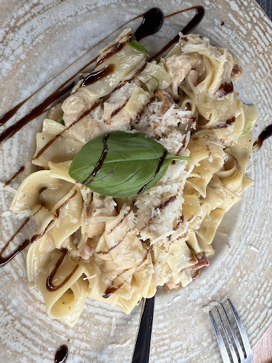 Read moreReingefallen! Viele gute Bewertungen und die Lage an der Oder haben uns hingelockt. Uns erwartete eine sehr unfreundliche Bedienung mit der Frage, ob reserviert sei (um 16.40), wenn nicht, kämen nur die Plätze direkt an der Straße infrage. Natürlich wurden während unseres Daseins bis ca 17.50 Uhr nur 2 der vielen reservierten Tische in besserer Lage besetzt- was ja zu erwarten war bei der sehr frühen Uhrzeit. Nun zum Essen: Man kann es essen, mehr nicht! Kleines Stück TK-Fisch labberig auf wenig gewürztem TK- Spinat (im Sommer, wenn es ja auch frischen gäbe), eine kleine Portion unknuspriger Bratkartoffeln (22€), außerdem Tagliatelle mit hell angebratenen Hühnchenstücken, wenig Tüten- Parmesankrümeln darüber und Pfifferlingen, die kaum ins Gewicht fielen (20€) Ja, man kann das alles essen, aber wir hätten bei den stolzen Preisen doch ein gewisses über Kantinenqualität hinaus gehendes Niveau erwartet (- wobei in unserer Kantine die Portionen...