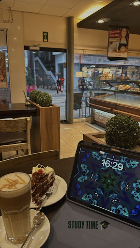 Die Atmosphäre ist ideal, um in Ruhe zu lernen oder ungestört zu arbeiten. Die gemütliche Einrichtung und das angenehme Ambiente sorgen für eine entspannte Umgebung. Besonders empfehlenswert sind die Torten – sie sind nicht nur optisch ansprechend, sondern auch geschmacklich ein echtes Highlight. Der Karamell Macchiato ist perfekt zubereitet und rundet das Genusserlebnis wunderbar ab. Wer einen ruhigen Ort mit freundlichem Service und köstlichen Leckereien sucht, ist hier...
