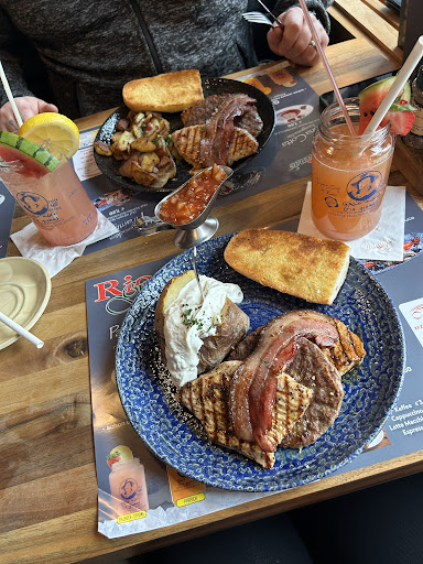 Read moreMein Mann und ich waren letzten Sonntag im Rio Grande Elmshorn das erste Mal essen. Parken konnten wir direkt vor der Tür auf dem Kundenparkplatz. Die Bedienung war nett. Das Essen wurde in angemessener Zeit gebracht und war total lecker. Mein Mann hatte die Country Pfanne und ich mein geliebtes Ribeye Steak. Beides war super zubereitet und das Steak genauso wie ich es mag - Medium. Die Country- Pfanne wurde auch in einer heißen Pfanne serviert. Das Ambiente war auch angenehm und nicht aufdringlich und die Hintergrundmusik genau richtig. Das Preis-Leistungsverhältnis war für mich völlig in Ordnung für das tolle Essen. Ein Stern gebe ich allerdings weniger dafür, das die Bedienung in gefühlten 5 Minuten Takt rum ging um zu gucken, ob alles okay ist. Das hielt ich für etwas unnötig, da direkt vorne ein kleiner Tresen ist, von wo aus man alles Tische überblicken kann um gegebenenfalls dann zum Tisch zu gehen um weitere Wünsche entgegen zu nehmen. Das hat mich etwas beim essen gestört. Wir werden auf nicht das letzte Mal dort...