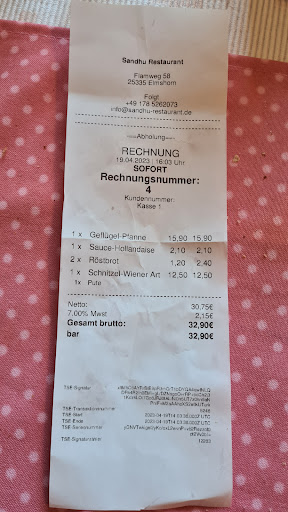 Read moreLieferung kam später aber das war OK. Von der Essensqualität hätten wir mehr erwartet. Sämtliches Fleisch (Gyros mit Lamm, Burger) waren tot gebraten, ein Pattie schon darüber, der war schon hart. Dafür waren die Pommes matschig. Ein Bun war wohl vom Vortag, trocken und am Rand schon hart. Die Chicken Nuggets ....na ja..... Das Essen hatte eher insgesamt Imbissqualität und so mancher Imbiss bekommt das besser hin. Schade, wir hatten bei den Preisen etwas mehr "frische" erwartet, es waren mehr nur Convenience Produkte. Schade, denn wir waren vor einigen Jahren mal dort vor Ort und alles war frisch und lecker. Heute und geliefert liegen Welten dazwischen. Oder hat etwa der Koch vom Grando Sukredo dort angefangen? Würde der Qualität und Art der Zubereitung entsprechen. Klar, man muss bei Lieferung Abstriche machen, das ist halt so. Aber hier ist nach den Abstrichen nichts mehr von "jam und lecker" übrig. Wir werden dem Sandhu aber eine zweite Chance geben und mal vor Ort essen. Bestellen und liefern lassen? So schnell...