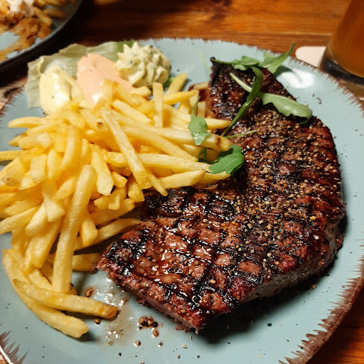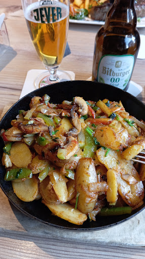 Allem erstmal voran ,mein Steak war auf den Punkt und butterzart. Der Rest LEIDER sehr schlecht. Fangen wir beim Service an. Das würde ich komplett austauschen. Die "Christel " ist absolut grenzwertig. Dermaßen verpeilt und teilweise unverschämt. Gerichte werden zusammen gestellt / Bonus plus genannt/ weil angeblich billiger und später von einer anderen Dame(auch nicht durchblickender!) Als gibt es nicht ,voll bezahlt. Bestellungen wurden leider nicht so umgesetzt wie man sie wollte ..z.b. sour cream etc bitte separat/ funktionierte leider nicht. Der Salat war absolut ungenießbar, faule Blätter ,geschmacklos. Die Pfeffer/Champignons sowie die Paprikasoße war eine glibberige ,geleeartige Pampe. Die Kegelbahnen ist in die Jahre gekommen,hat ihren Zweck aber voll erfüllt. Es war sehr lustig. Natürlich haben wir uns bzgl des Essens beschwert,aber ich befürchte wenn der Chef / der Koch ist( im übrigen Mega Steak ) sich nicht von dem Rest trennt,wird das leider nix. Uns seht ihr leider nicht mehr. Um Spaß zu haben auf der Kegelbahnen evtl( aber selbst Knabbereien gibt es bei euch nicht)zu einem Bier. Aber wenn ich Essen gehen möchte ,dorthin NICHT. Das war das erste Mal in meinem Leben ,dass ich Kein Trinkgeld gegeben habe. Dem Laden weiterhin viel Erfolg....