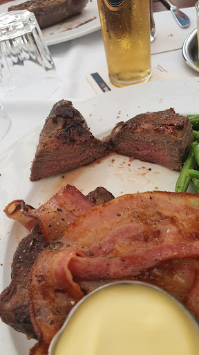 Read moreWir waren heute zum Geschäftsessen dort. Grillteller: Fleisch kalt und bitter, Kräuterbutter schmeckte nach nichts, Pommes lecker. Hüftsteak mit Champignons und Dünstzwiebeln und Bratkartoffeln (ohne Speck bestellt): Hüftsteak kalt und bitter, Zwiebeln und Champignons ok, Bratkartoffeln zu dick geschnitten. Nach 4, 5 Gabeln dann das Problem. Unter den Kartoffeln befanden sich dann doch Speckwürfel. Geht garnicht. Zumal die Bedienung vorab noch fragte, ob es wegen religiöser Sache ohne Speck sei, was mit 'Ja' beantwortet wurde. Wurde reklamiert, es wurde allerdings weder neues Essen angeboten, noch aus der Berechnung genommen. Einmal...