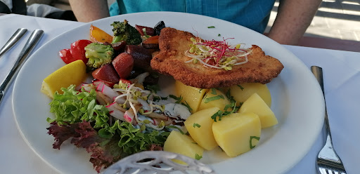 Letzten Samstag waren wir hier zum Mittagessen. Mein Mann hatte, als Überraschung für mich, im Vorfeld einen Tisch für 2 Personen reserviert und den Anlass mitgeteilt. Die Kommunikation per Mail war unproblematisch. Vor Ort wurden wir freundlich begrüßt. Anlässlich Frauentag gab es die Option, sich an einem kleinen Büffet zu bedienen. Der Preis lag bei 14,90 Euro pro Person. Wir hatten aber Appetit auf zwei Hauptgänge aus der Speisekarte. Der für uns reservierte Tisch war schön hergerichtet. Einen Blumenstrauß gab es auch für mich, den mein Mann vorher bestellt hatte. Vereinbart hatte er auch je ein Glas Sekt. Hier standen mehrere Sorten zur Auswahl. Normalerweise bestellt man seine Speisen und Getränke am „Tresen“ und bekommt sie dann serviert. Unsere Wünsche wurden komplett am Tisch aufgenommen. Neben zwei kleinen Getränken orderten wir Schnitzel und Forelle. Dass man die Sättigungsbeilagen separat und mit Aufpreis bestellen muss, mag vielleicht andere Gäste stören. Für uns war es in Ordnung. Es gibt immerhin die Möglichkeit, aus mehreren Beilagen zu wählen. Die Getränke wurden schnell serviert. Die Speisen erhielten wir in angemessener Zeit. Bei mir fehlte eine Kleinigkeit. Ein kurzer Hinweis und das Fehlende wurde nachträglich mit einer Entschuldigung serviert. Das Essen war lecker, die Portionen waren ordentlich. Man sitzt hier herrlich, mitten im Grünen, mit angenehmen Klima. Dank Glasscheibe kann man in die Küche schauen. Hier hat also keiner etwas zu verbergen. Wir sind vom Gesamtkonzept begeistert. Der Service war von Anfang bis Ende hervorragend. Wir sagen Danke und kommen zu gegebener...