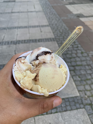 Die Bedinung hat uns eine einzige Karte auf den Tisch gelegt und stand bereits nach einer Minute wieder da, um Bestellungen aufzunehmen. Selbst nachdem wir um mehr Zeit gebeten hatten, da wir die Karte erst rumreichen mussten, stand sie im Minutentakt wieder da und war sichtlich genervt. Wir waren die einzigen Tischkunden, trotzdem hat der Service es nicht hinbekommen uns vier Personen die Becher gleichzeitig zu servieren, zwischen dem ersten und letzten Becher, der auf den Tisch gestellt wurde, sind fast 20 Minuten vergangen. Das Eis an sich ist okay, die "heiße Schokososse" im Eisbecher ist leider nur lauwarmer Schmodder-Pudding mit Haut, richtig ekelhaft, hätte es so in der Karte gestanden, hätte ich diesen Becher niemals bestellt!
