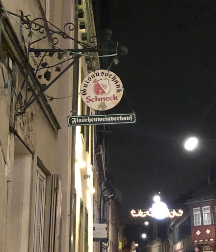 Read moreHeute war'n wir wieder mal in Eltville im Weinlokal. Nach dem Shopping führte unser Weg, flux und schnurstracks in die " S C H N E C K ". Wir haben hier schon oft gesessen, vor 20 Jahren war's gewesen. Hier kann man seinen Stress vergessen, beim Gläschen Wein und gutem Essen. Im Haus, da lebt die " Nostalgie", ist fast so alt wie Sanssouci. Für mich, als Handkässommelier, muss ab und zu ein Handkäs her , der wurd' im Riesling eingelegt, was mich ganz positiv bewegt. Meine Frau und mei' Cousine, sitzen da, mit froher Mine, denn die Schnitzel war'n perfekt und haben beiden gut geschmeckt. Das Personal hier im Lokal, nach uns'rer Meinung , erste Wahl.Freundlich lächelnd und adrett , kurz gesagt , so richtig nett. Die Preise hier , ich sage fast, sind für Rentner angepasst, das find ich gut und auch ganz toll, drum ist auch stets der Hof hier voll. Der Abend hier war wunderschön, wir freu'n uns auf ein...