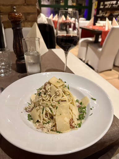 Being Italian, we probably set the bar high when eating at Italian restaurants, especially abroad, and are often disappointed. But this time, despite our low expectations going in, we were dissatisfied. The house salad (nothing to do with Italy) was overwhelmed by cheap balsamic vinegar and an unrecognisable plastic-type of cheese, the sauce of ravioli was not with “salsiccia” but some sort of German surrogate, and the pizza both heavy and elastic … Last but not least, the bill was very substantial (half a portion (i.e. two spinach and ricotta ravioli, although huge in size, for €11.00 ?!?!) and the “friendliness” of the owner overpowering, especially since he thought it would only be appropriate to tip himself with €3 without even asking (the credit card machine was indeed broken that night, what a coincidence …). It’s a No No from us...