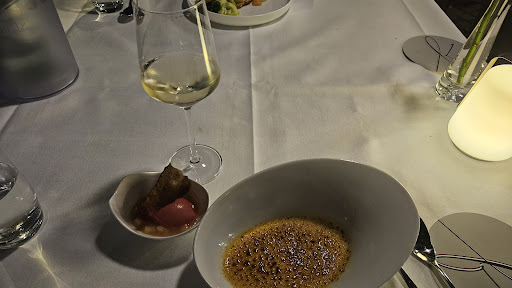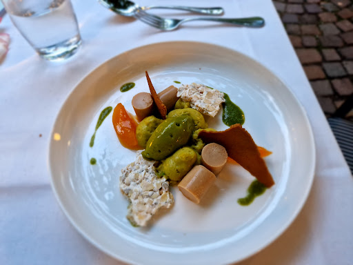 Read moreWhat an amazing experience at this lovely, intimate restaurant. My dining partner ordered the gourmet set menu with 5 courses and I ordered the seasonal set menu with 5 courses. Each dish was finally balanced, beautifully plated, and extremely delicious. I also ordered the wine pairing, which included a nice variety of local Rheingau wines. During the summer, the seating is outside on a beautiful patio covered by a canopy of trees. When we were there, the restaurant only seated about 10 tables and the service and quality of food was clearly tailored to that intimate audience. Everyone spoke plenty of English to explain the dishes and the wine to our understanding. Overall, a wonderful experience. Between the food and wine (and aperitif), we spent...