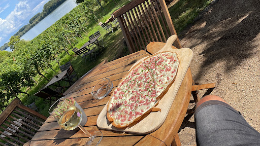 Super schöner Garten mit toller Atmosphäre! Wollten eigentlich eins der vielen schönen Restaurants in Eltville besuchen,als wir haben den Turm bestiegen haben wir von oben den etwas versteckten Rheingarten erblickt und wollten direkt dort essen. Obwohl es ein Samstag war bei schönem Wetter,war nicht viel los. Bestellung per Selbstbedienung,das Essen kann dann abgeholt werden. Total entspannte Atmosphäre,die Bedienung an der Bar war total geduldig und freundlich. An warmen Mahlzeiten wird hauptsächlich Flammkuchen angeboten,es gibt aber auch Kuchen, Brezeln,Spundekäs usw. Total toll fanden wir,dass keine Plätze reserviert waren bzw werden,so konnten wir einen Tisch der Wahl ergattern und hatten im hintersten Eck des Gartens nicht nur absolute Ruhe,sondern einen wunderbaren Blick auf die Weinberge. Wir hatten zwei Flammkuchen,einmal mit Lachs und einmal mit Schinken/Rucola und beide schmeckten fantastisch!! Wir haben tatsächlich von einer Art Biergarten nicht viel erwartet,waren daher total positiv überrascht,wie gut alles schmeckte! Toilettenwagen sind etwas abseits vorhanden und stören nicht den wunderschönen Blick auf den Garten. Ein schöner Sandkasten/Spielplatz mit Sandspielzeug ist vorhanden,sowie zahlreiche verschiedene Sitzmöglichkeiten. Wir waren zu zweit,kommen das nächste Mal aber auf jeden Fall mit unseren kleinen Kindern mit! Bezahlt haben wir für zwei Personen,zwei Flammkuchen und Getränke,30€. Finden wir...