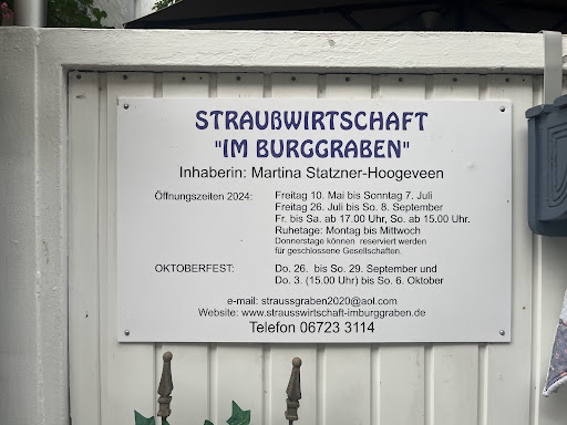 Read moreWir wollten letzten Sonntag diese Straußenwirtschaft auf Grund der Guten Bewertungen besuchen. Wir hatten für 17.30 im Garten einen Tisch telefonisch reserviert. Sind extra aus Frankfurt angereist, dann wurde uns der Zugang wegen unseres kleinen Hundes Yorki verweigert. Wir wurden weder bei der telefonischen Reservierung daraufhin gewiesen noch findet sich irgend ein Vermerk auf der Homepage. Die Begründung des Inhabers " Ich bin einmal von einem Hund gebissen worden". Andere Gästen, die das mitbekommen haben, wunderten sich auch, dass er so reagierte. ALLE HUNDEBESITZER UND FREUNDE, BITTE ERZÄHLT ES WEITER UND TEILT DIES, DASS EUCH NICHT DAS GLEICHE PASSIERT. Wir waren...