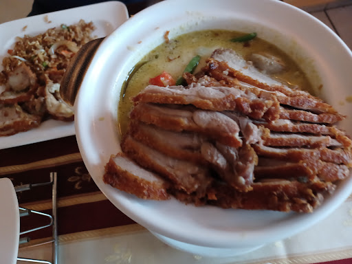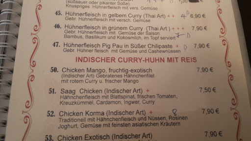 Wir waren heute, an einem Freitag um ca. 18Uhr aufgrund der vielen, positiven Bewertungen zu zweit dort. Die Lokalität ist von aussen "nix dolles" und hat keine Strahlkraft, sondern wirkt (ist nicht so!) wie ein umbauter Imbisswagen. Viele Tische waren reserviert - und das macht Sinn. Kurz nach uns war das Restaurant ruckzuck voll besetzt, viele Telefonbesteller und Abholer vor Ort. Wir hatten ein Entengericht mit rotem Curry und ein Gericht mit Huhn und Spinat und beide Gerichte kamen nach einer angemessenen Wartezeit zum Tisch. Die Gerichte wurden ohne unnötige Dekoration serviert, die Portionsgrösse war gut, die Gerichte sehr lecker und, auch wenn ein Gericht 2 von drei Schärfegraden haben sollte, "nur" aromatisch pikant, also auch für Kinder geeignet. Die einzige Servicekraft verdient absoluten Respekt. Sie schmeißt den Laden großartig und jongliert zwischen den Tischen, der Theke und den Abholern, dass es eine wahre Freude ist. Das wirkt evtl. etwas oberflächlich für den Gast, aber es zählt hier die korrekte Abarbeitung der Bestellungen - und das läuft perfekt hier. Was haben wir für zwei alkoholfreien Getränke und zwei wirklich leckere Gerichte gezahlt? 22€. Aufenthalt ca. 1,5...