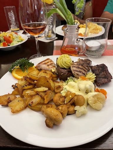 Read moreAm 05.09.2019 war das Wetter leider nur mittelprächtig. Daher waren wahrscheinlich im Außenbereich keine Sitzkissen. Statt sofort mit der Speisekarte welche zu bringen oder mindestens anzubieten hat man erst mal 20 Minuten gewartet bis ein Sonnenstrahl durchkam. Dann wurden erst die nicht besetzten Stühle mit Sitzkissen bestückt, statt erst die Gäste zu versorgen. Als Gast mußte ich selbst die Kissen vom Stapel nehmen. Bevor ich etwas bestelle, sehe ich mir IMMER erst die Karte an. Ergebnis = 30 Minuten warten, Kellner kam dann erst nach Aufforderung erneut an den Tisch. Getränke bestellt, kaum ausgesprochen wollte der Kellner verschwinden. Nach lautem 2maligem Zuruf kam er zurück und nahm dann doch noch die Speisenbestellung mit verwundertem Blick auf. 15 Minuten auf Kaffee und Latte Macciato gewartet. Dann kam der Regen. Kellner packt Sitzkissen ein anstatt uns mit den Getränken zu helfen und uns einen Tisch im Innenraum oder Wintergarten anzubieten (2 Personen weiblich Ü60) ! Ergo = Sachen geschnappt, Platz im Wintergarten genommen (Tisch frei gemacht von Stuhlkissen und Blumentöpfen). Blumen auf dem Tisch sind schön und ansprechend; jedoch Blumentöpfe mit echter Erde auf dem Tisch ist ekelhaft. Gehören auf ein Fensterbrett! Kaum gesessen kam das Essen. Man konnte es essen (hungrig), jedoch war Preis/Leistung unverschämt (s. Foto's). Wahrscheinlich haben wir einen Stein der Promenade mitbezahlt. (Mixed Grill 24,50 €) = Kräuterbutter war supermini Ausführung und noch gefroren. Der Djuwetschreis war sauer (ungenießbar schlecht). Die Bratkartoffeln waren teilweise matschig oder verbrannt. Das Lamm- und Rindfleisch war kaum erkennbar, zäh wie Leder und Furztrocken. Das Schweine- und Hähnchenfleisch ebenfalls trocken. Bei jedem Bissen mußte man etwas trinken, sonst würde es jetzt noch im Hals stecken. Die Pilze und der Brokkolli waren das einzige was wirklich schmackhaft war. (Geschnetzeltes indische Art = 14,90) geschmacklich okay, aber nicht mehr (3-4 € weniger) wäre für die Leistung auch genug. Wahrscheinlich muß der Rheinblick mitbezahlt werden. Auf die Kellnerfrage “Hat es geschmeckt?“ Ehrliche Antwort s. oben, kam nur ein Kälbchenblick und Achselzucken!!! Einmal...