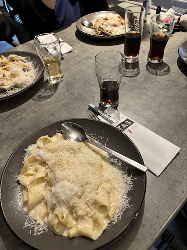 Read moreWaren heute dort zu viert essen. Getränke kamen sehr schnell, beim Essen gab es jedoch Probleme. Lange Wartezeit, bis das Essen kam aus technischen Gründen. Ich habe bei meinem Gericht (PAPPARDELLE QUATTRO FORMAGGI) zwei Käse Sorten abbestellt, weil diese nicht vegetarisch sind. Meine Portion kam angeblich ohne Parmesan den ich abbestellt habe. Unsere zwei Portionen Spaghetti Carbonara, sahen überhaupt nicht aus wie eine gewöhnliche Portion Spaghetti Carbonara. Die Carbonara war rot und scharf. Nachdem wir auf diese zwei Dinge aufmerksam gemacht haben, wurde uns gesagt, dass die Carbonara so rot und scharf sei wegen dem Fleisch. Zudem war unsere Begleitung schon oft da und die Nudeln sahen und haben noch nie so geschmeckt. Zu meiner Portion, habe ich drauf aufmerksam gemacht, dass ich dies aufgrund des Parmesans den ich abbestellt habe nicht essen kann, da der Käse nicht vegetarisch ist. Daraufhin kam die Antwort vom Chef, dass ich dies mit einer Veganen Ernährung verwechsele. Ich konnte mich nicht zu Ende erklären, die Antwort vom Chef war nur, dass er selbst Vegetarier sei. ( Parmesan und weitere Käse Sorten sind nicht vegetarisch, weil diese aus dem Magen gewonnen werden, somit ein Organ vom Tier also nicht vegetarisch (Lab) Käse ist nur vegetarisch wenn er aus mikrobiellem Lab hergestellt wird, Parmesan wird jedoch ausschließlich aus dem Tierischen Lab hergestellt.) Somit gingen 3 Gerichte zurück, meins kam ohne jegliche Veränderung wieder ,,es ist doch kein Parmesan“. Und zwei Gerichte wurden neu bestellt, getauscht gegen ein Gericht mit Gambas und eine Pizza Salami - die Pizza war leider auch nicht gut. Unsere Bedienung war jedoch sehr sehr freundlich und...