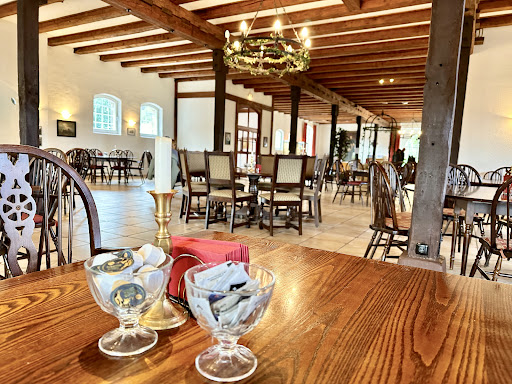 Read moreEin Stern ist noch zu viel. Völlig unlogische Vorgehensweise bei der Vergabe der Tische im Hof - Café. Man muss sich anstellen und danach wird einem ein Tisch zugewiesen, obwohl die Tische den Mindestabstand aufweisen. Eine freie Tischwahl und eine sofortige Bestellung ist hier nicht möglich. Das Personal ist unverschämt, unhöflich und kassiert während des Essens den Betrag ab. Über das gesamte Gelände verteilt sich der furchtbare Gestank des gammeligen Brackwassers des Karpfenteiches. Als Krönung noch die bürgerliche Umsetzung eines Kunsthandwerkermarktes mit Horrorfiguren und nutzloser, häßlicher Deko. Hier hilft nur der blaue Sack.