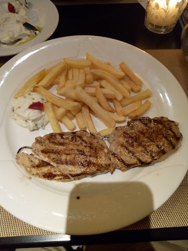 Einen Stern gibt es für das Ambiente und einen für die Bedienung. Die zwei jungen Damen waren wirklich freundlich und nett. Nur das ständige "Alles gut? Alles gut?" der einen hat etwas genervt. Es war auch leider nicht alles gut. Wir hatten Lust auf eine Vorspeise. Da es beim Griechen wirklich gute Vorspeisen gibt, konnten wir uns nicht entscheiden und wählten daher eine Platte für zwei, in der Erwartung, dass wir von allem etwas probieren können. Es kam ein Teller mit vier verschiedenen Dips mit jeweils einer Olive verziert, vier gefüllten Weinblättern, ein paar Peperoni, gebratene Auberginenscheiben und das alles hübsch angerichtet auf einem riesigen Berg THUNFISCH AUS DER DOSE. Es kam wie es kommen musste: "Alles gut?" Eine Dame, vermutlich die Chefin, obwohl sie nicht griechisch wirkte, kam zum Tisch. Völliges Unverständnis, dass wir für 18,90 € etwas anderes erwartet hatten. Zumal "alles frisch gekauft" wäre und sich noch niemand beschwert hätte. Ihr Verhalten war sehr unprofessionell. Bei einem echten Griechen gibt es solche Platten umsonst. Von fünf belegten Tischen an diesem Abend, kamen drei Beschwerden. Entschädigung: Ouzo! Und das war bestimmt nicht der für die guten Freunde. Das Olivenöl auf unserem Tisch war auch schon fast zwei Jahre abgelaufen. Ein weiterer Mitarbeiter hatte den ganzen Abend nur die Aufgabe grimmig in die Gegend zu schauen.