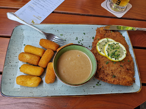 Read moreZuerst kurz das Negative: Der Biergarten liegt direkt an der Hauptstraße und ist deshalb selten wirklich ruhig. Das gußeiserne Gartenmobiliar ist nett anzuschauen, aber irgendwie fehlkonstruiert: Man muss aufpassen, dass einem der Stuhl nicht unter dem Hintern zusammenklappt.