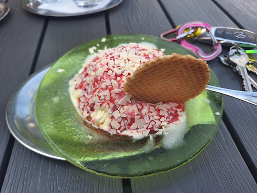 Read moreWollten eigentlich im Innenbereich was bestellen. Die Toiletten waren unterirdischen, die Frauentoilette waren gesperrt. Die Bedienung war deutlich überfordert. Wir saßen etwa 5 Minuten ohne Beachtung. Da ab den Tischen keine Karten ausliegen, wollten wir uns eigenständig welche besorgen. Dies hat der Bedienung wenig gefallen, und das auch laut stark kommuniziert. Mit der Karte sind wir dann wieder an den Platz, wo wir nochmals 3 Minuten warteten, ohne Erfolg. Wir sind dann aufgestanden und gegangen. Service wirklich unterirdisch. Von der Freundlichkeit ganz zu schweigen. Die vorbeigetragen Eisbecher und die Anrichte der Kühlauslage sahen sehr ansprechend aus. Nur deswegen zwei, anstatt einem Stern. Der Rest der Diele war allerdings eher ausladend und kein bisschen liebevoll gestaltet. Man sagt ja in der Gastronomie, die Sauberkeit der Toiletten, spiegeln die Sauberkeit der Küche wieder. Ob dem hier so ist, kann ich nicht sagen. Danke fürs Erlebnis, wollte schon immer beim Eis essen angemeckert werden. Nicht...