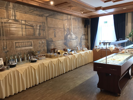 Verry nice very luxury still, in heart of Erding. Whole building is one huge shoppping mall with different luxury brands and in one corner they place and build Hotel and restaurant with caffe bar. Verry nice and warm place, service is good during winter and night. I'm little bit picky about food, drinks and caffe so only thing that I would like to change is caffe. Cakes and food is delicious mixture od Bavarian and German combined with modern trends. But caffe is really bad, too much hot water in one cup without proper taste more like burned than proper roasted.