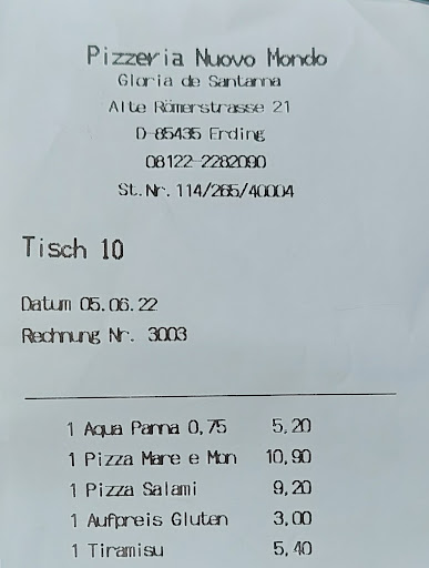 Read moreIm Nuovo Mondo, am Ortseingang zu Langengeisling, kann man erstklassig Pizza essen. Mit Lasagne habe ich eine weniger gute Erfahrung gemacht, mit Calzone ebenso, aber die Pizzen sind sensationell. Da ist sogar der Boden knusprig, obwohl er nicht dicker ist als anderswo.