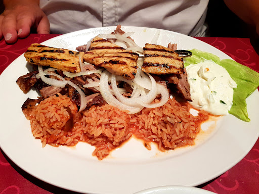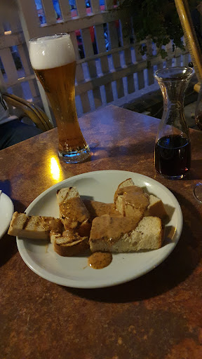 Bevor ich hiervon zu erzählen beginne muss man sagen das alle Gerichte (auch die Griechischen Begriffe) auf der Karte nicht erklärt wurden so werde ich einfach mit eigens aus dem Kontext gefundene Namen nutzen Die Platte bestand aus einer Art Hacksteak (Souflaki glaube ich heist es), einem Schweinesteak, Gyros, einem (anscheinend) Geflügelspieß, Tomatenreis und der oben schon erwähnten Knoblauch-Käse Creme, einer Portion Pommes sowie einem sehr Gequält wirkendem Salatblatt Es war SEHR VIEL was ich aber auch an der Beschreibung in der Karte hätte entnehmen können. Allgemein war das essen ein wenig schmal besalzen und für mich als absoluten Salzfan geht das natürlich gar nicht. Zum Glück standen an allen Tischen Salzstreuer. Was außerdem auffiel ist dass alles was auf dem Teller lag sehr trocken war. Entweder haben sie aus diesem Grund diese Creme dazu gegeben oder ich hatte einfach nur Glück. Mit Creme hat jedoch das gesamte essen sehr gut Geschmeckt. Als "Nachtisch" gab es für mich noch einen flambierten Metaxa wo jedoch die Bedienung 2 Gebracht hatte und meine Verlobte sich nun so auch noch einen genehmigen durfte (der jedoch am Ende genau so auf der Rechnung Stand). Diesen Genuss hinter sich gebracht war der romantische Abend auch schon vorbei. 4 Sterne gibt es von mir da es alles in allem Gut und sauber war jedoch kleine Einzelheiten manchmal doch ein wenig die Sinne getrübt hatten