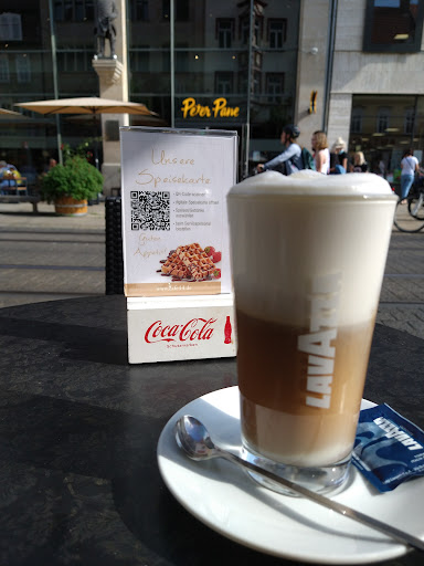 Ambiente: Fußgängerzone, typisches Innenstadtcafé.