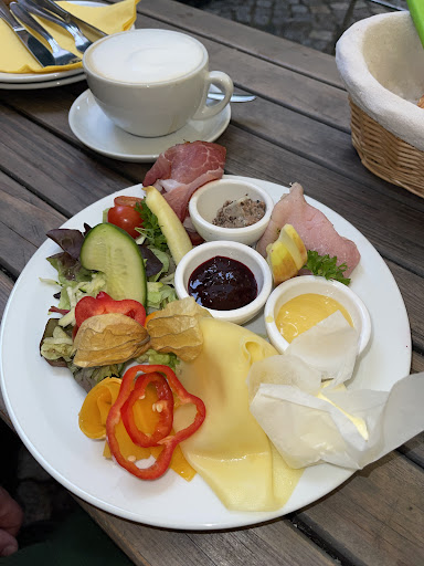 Where I come from, Chai is a very important part of breakfast. And it is Chai that is prepared in a specific way. So their tea somehow came close to my country’s tea. I’ll give them that. The cold breakfast spread was also nice. I liked the Leberwurst. The bread was a little hard for my liking. But people who love hard bread can appreciate it. The cake was also not at the top of my list because I generally love soft and fluffy cake but people who like the compact-ish, hard-ish and chunky-ish cake may appreciate it. But generally, the atmosphere at the place is AMAZING and cute and cozy. We ended up spending more time than we had intended to here. Yes. It is that cute and that comfortable. It was raining, we were seated outside but there were blankets to help me keep warm.