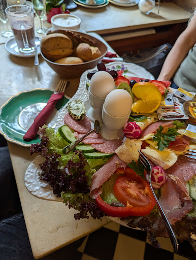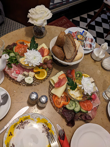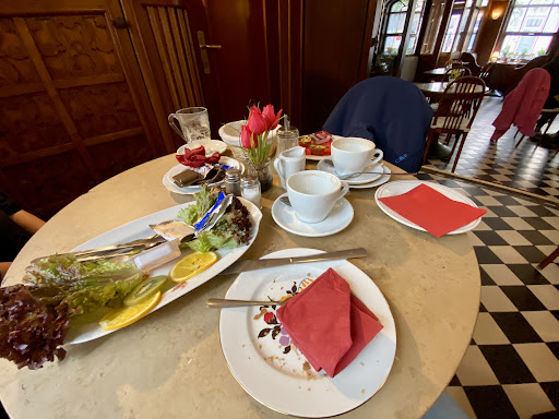 Read moreOffenbar lebt man hier vorrangig von der Substanz - die historische Einrichtung ist mit den Séparées auch wirklich hübsch. Ansonsten bitte viel Zeit und keinen überhöhten Anspruch mitbringen. Wir wollten hier am Vormittag frühstücken, ein normaler Kaffee, ein Latte Macchiato, ein Stück Kuchen, ein Frühstücksgedeck. Obwohl augenscheinlich genug Personal da war, vollzog sich alles in Zeitlupe. Warten auf die Karte, Warten auf die Annahme der Bestellung, Warten auf die Getränke - da waren dann schon über 40 min vergangen. Die Speisen wurden immerhin noch serviert, bevor der Kaffee wieder kalt war. Der Kuchen war gut, das Frühstück mittelmäßig. In einem Lokal mit dem Anspruch "Wiener Kaffeehauskultur" erwarte ich etwas Anderes als Industrie-Aufbackbrötchen sowie Butter und Nutella in der Einweg-Portionspackung. Der vergessene O-Saft wurde nach Intervention nachgeliefert. Keine Entschuldigung für nichts. Schade, mit einem Mindestmaß an gastronomischer Professionalität und Engagement könnte man aus dem Café echt was machen. Wofür es die aushängenden Qualitäts-Zertifikate gab, hat sich uns nicht wirklich...