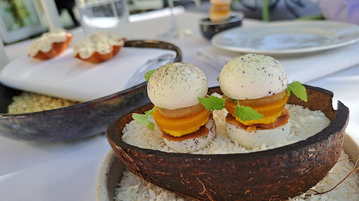 Read moreSchon lange wollten wir mal nach Erfurt und wir haben gleich den ersten Abend mit dem Clara gestartet. Was uns hier erwartet hat war ausgesprochen phänomenal und gehört zu den besten kulinarischen Reisen die wir erleben durften. Auch in Hamburg (meine geliebte Geburtsstadt), müsste man sich erstmal etwas umsehen, um auf solch ein stimmiges, kulinarisch harmonisches und mit viel Liebe arrangiertes Gesamtbild zu treffen. Geradezu umwerfend waren die kaum enden wollende Darbietungen der vielen Amuse-Bouche vor dem eigentlichen Start. Ein bunter Blumenstrauß der Geschmäcker verschiedenster Länder und Kulturen. Eine Hochachtung an die Präzision und vor allem an die Wahl der Produkte, die ein hohes Maß an allerbester Qualität und auch Nachhaltigkeit aufwies. Nicht minder folgten die einzelnen Menügänge, immer zuvorkommend und überaus freundlich vom Service präsentiert und mit den passenden Weinen oder auch anderen Getränken begleitet. Wir hatten das Glück, dass wir im Garten des Kaisersaals sitzen konnten, was nur in einem bestimmten Zeitfenster im Sommer geschehen kann, da es dann vom Veranstaltungszentrum nicht genutzt wird. Es hat uns sehr viel Spaß gemacht, dieses herrliche Menü unter freiem Himmel zu genießen. Einen ganz herzlichen Dank an Christopher Weigel und dem...