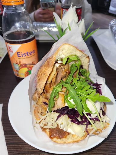 Sehr guter Döner, hab hier heute zum ersten Mal gegessen und bin sehr positiv gestimmt. Das Fladenbrot war sehr lecker, es war knusprig und das auch noch nach 15mim Heimweg. Viel Soße war gut verteilt im Inneren und ist am Ende nicht mal unten rausgesuppt. Außerdem war der Inhalt sehr schön geschichtet, ganz unten Fleisch und Soße, in der Mitte der Salat, und oben wieder Fleisch und Soße. Gefühlt hatte ich keinen Bissen ohne das ganze Geschmackserlebnis - Top 👍🏻 meiner Erfahrung nach selten diese Mühe beim befüllen. Vom generellen Geschmack war er wie erwartet lecker, Fleisch und Soße ganz normal gut, aber die Teigtasche war mega. Einfach cool mal einen Döner zu essen wo auch die kleinen Dinge /...